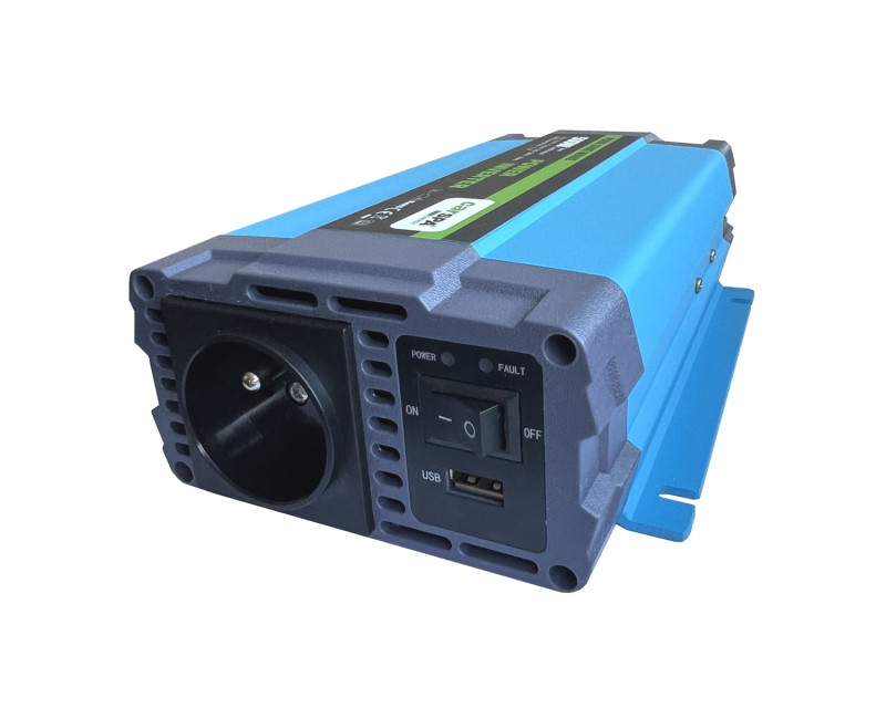 Měnič napětí Carspa P500-12/24-25 - s čistou sinusovkou a s širokým rozsahem napájecího napětí 12–24V, nabízí vynikající kvalitu a skutečný sinusový výstup pro provoz Vašeho oblíbeného elektrické nářadí a jiných citlivých zatížení. Vhodný například pro napájení kamer, fotoaparátů, notebooků atd, také pro menší ruční nářadí.