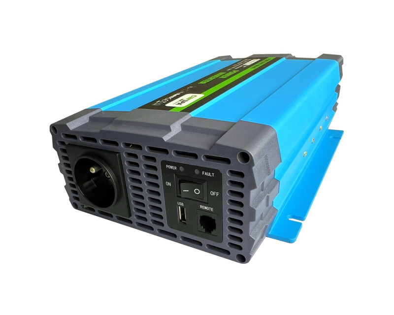 Měnič napětí Carspa P1000-12/24-25 - s čistou sinusovkou a s širokým rozsahem napájecího napětí 12–24V, nabízí vynikající kvalitu a skutečný sinusový výstup pro provoz Vašeho oblíbeného elektrické nářadí a jiných citlivých zatížení. Vhodný například pro napájení kamer, fotoaparátů, notebooků atd, také pro menší ruční nářadí.
