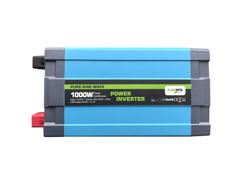 Měnič napětí Carspa P1000-12/24-25, 12/24V, 230V, USB, 1000W čistá sinusovka