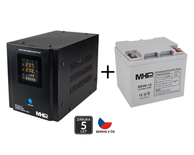 Záložní zdroj MHPower MPU-500-12, UPS, 500W, čistý sinus, 12V SET s Gelovou baterií 40Ah