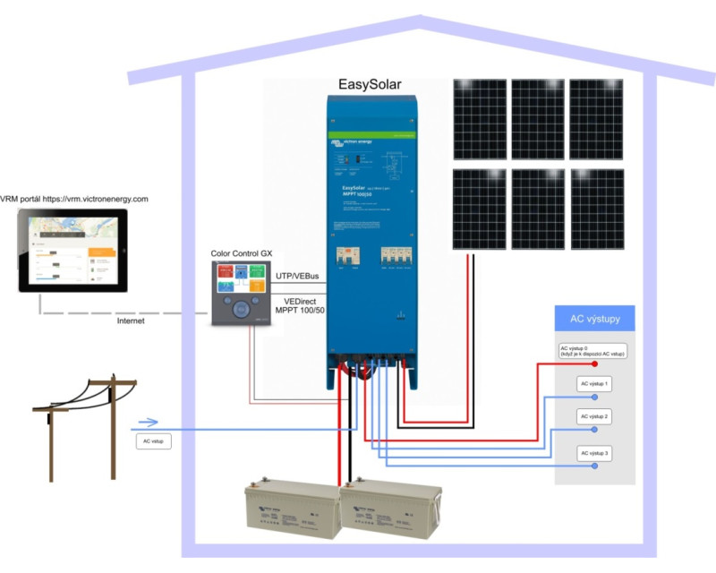 Komplexní multifunní řešení pro rodinné domy, rekreační objekty, chaty a podobně. Systém zvyšuje Vaší energetickou nezávislost vlastní vyrobenou elektřinou a napájí energií spotřebiče i v případě výpadků dodávek standardní rozvodné sítě (blackout).