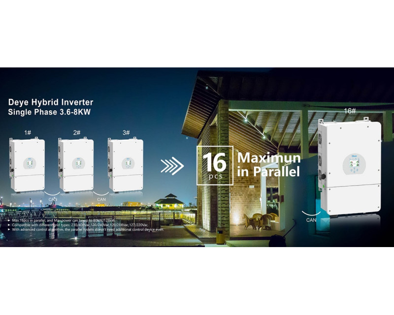 Multifunkční nízkonapěťový hybridní měnič Deye SUN-12K s nástěnným držákem kombinuje solární invertor a nabíječku baterií do 1 zařízení, které využijete pro dlouhodobé napájení elektrických zařízení v domácnosti, v kanceláři, na cestách i kdekoliv jinde. Podporuje asymetrický 3fázový výstup, čímž rozšiřuje aplikační scénáře na absolutní maximum. Měnič pak komunikuje se 40 až 60V bateriemi přes CANbus rozhraní a je plně kompatibilní s nejnovějšími modely od renomovaných značek Pylontech a Pytes. Na přístroji se dále nachází konektory RS232, RS485 a DRM, díky čemuž je systém dostatečně flexibilní.