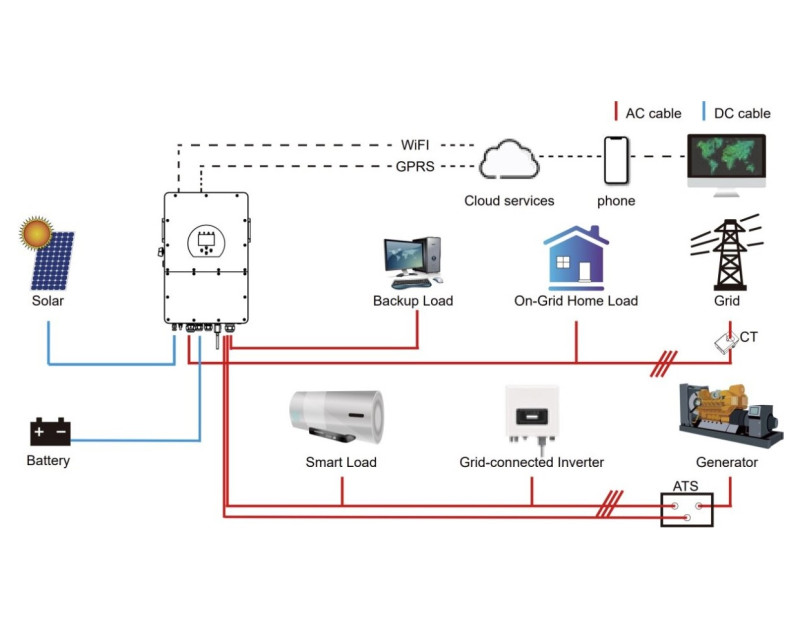 Hybridní 3fázový invertor Deye SUN-12K využijete pro fotovoltaické systémy. Je určený pro vysokonapěťové baterie s napětím 150 V až 800 V. Ty zajišťují vyšší účinnost systému díky menšímu odpadnímu teplu. Měnič podporuje více baterií najednou. Navíc umožňuje ukládání energie z dieselového generátoru.