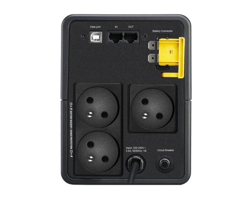 Zdroj APC poskytuje mnoho výhod. Nejenže chrání elektroniku před přetížením a přepětí, ale také se vypořádá s nestabilitou v síti. Pokud tedy bydlíte nebo pracujete v místě, kde dochází k častým výkyvům připojení, schopnosti APC jistě oceníte. Zdroj má 3 French Socket zásuvky, které zamezují poškození připojených zařízení během výpadku proudu.