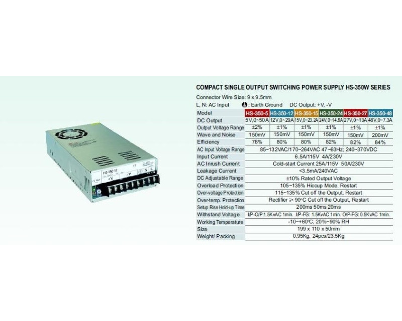 Carspa HS-350-48 průmyslový zdroj spínaný 48V 350W