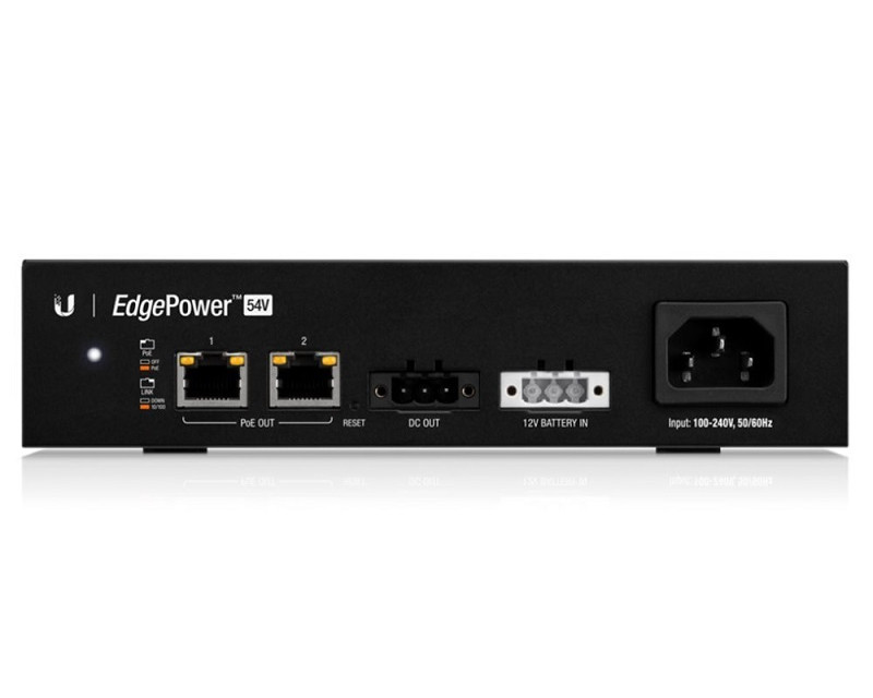 Pro připojení napájených zařízení jsou k dispozici 2 ethernetové porty s rychlostí 100Mbps a 1 výstup na svorkovnici. EdgePower je možné spravovat přes aplikaci UNMS nebo ve vlastním webovém rozhraní. Samozřejmostí je podpora protokolu SNMP.