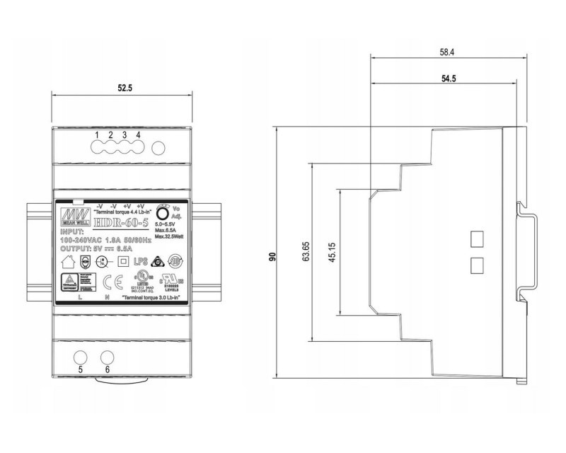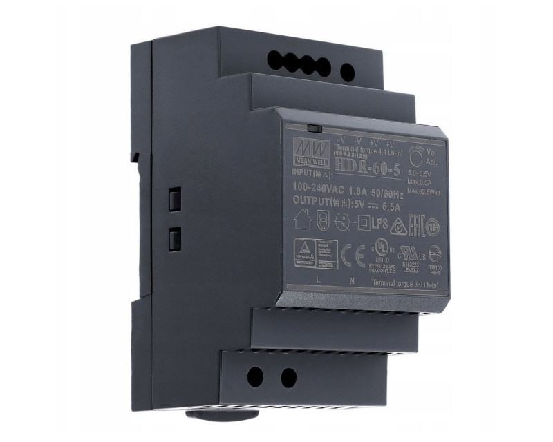 MEAN WELL HDR-60-5 Průmyslový napájecí spínaný zdroj 5V 32,5W na DIN