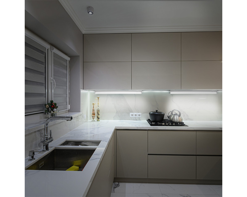 LED trubice T5 o příkonu 9W je ideální volbou pro osvětlení kuchyňských linek, pracovních ploch i technických prostor. Poskytuje neutrální bílé světlo (4100K) se světelným tokem 720 lm a širokým úhlem svícení 180°. Díky indexu podání barev CRI >80 vykresluje barvy přirozeně a příjemně. Životnost LED je 30 000 hodin a krytí IP20 ji předurčuje pro použití v interiéru. Svítidlo je vybaveno vypínačem a lze jej propojit s dalšími kusy do jedné linie pomocí flexibilního (15 cm) nebo pevného konektoru. Balení obsahuje přívodní šňůru (1 m). Rozměry: 540 x 35 x 22 mm. Energetická třída G. Barva: bílá. Materiál: PC.