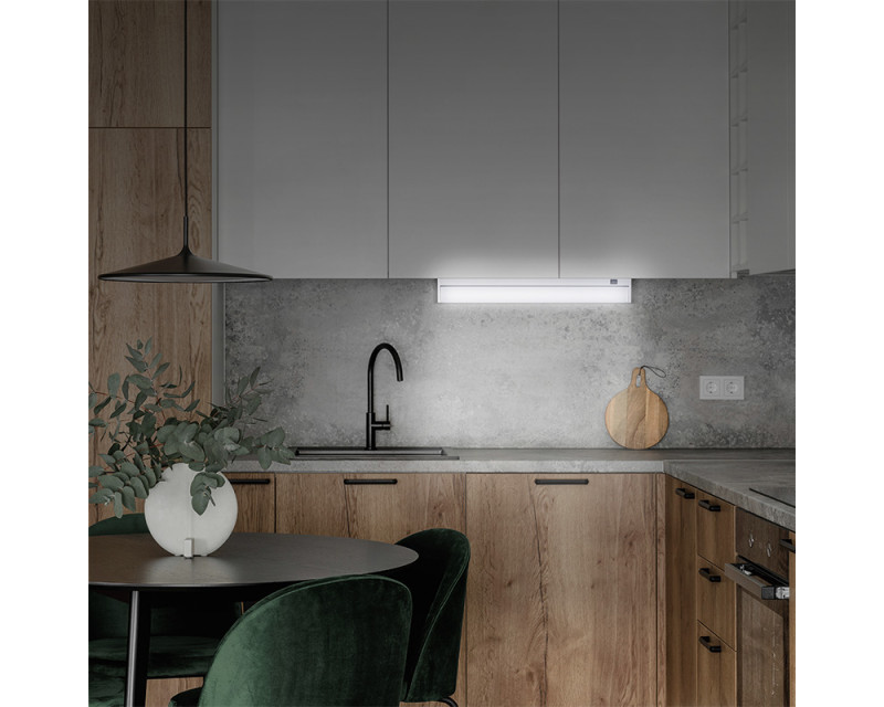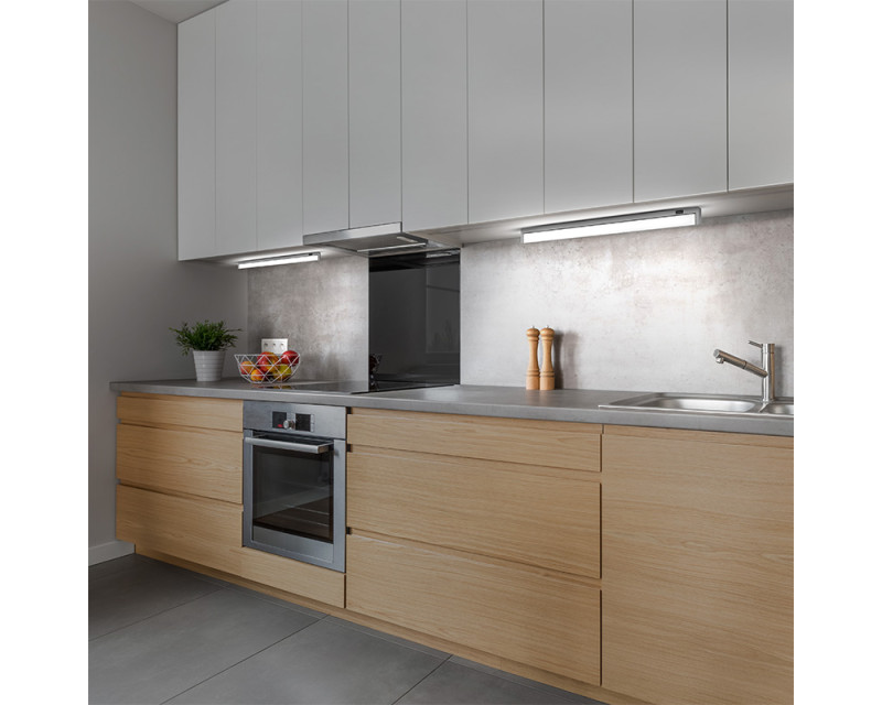 LED náklopné lineární svítidlo je praktické řešení pro osvětlení kuchyňských linek a pracovních ploch. Díky náklopnému designu snadno přizpůsobíte směr světla. S příkonem 10W a světelným tokem 750 lm poskytuje neutrální bílé světlo (4100K) s vysokým indexem podání barev CRI >80. Manuální vypínač, úhel svícení 170° a životnost LED až 30 000 hodin z něj činí ideální volbu pro každodenní použití. Svítidlo je vyrobeno z hliníku ve stříbrném provedení, napájeno přímo z AC 220–240V. Rozměry: 580 x 83 x 35 mm. Energetická třída G. Balení: krabice.