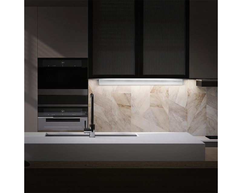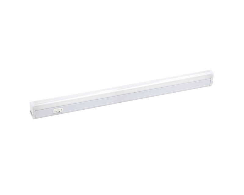Výkonná LED trubice T5 s příkonem 13W poskytuje světelný tok 1050 lm v neutrální bílé barvě (4100K), což je ideální pro osvětlení kuchyňských linek, pracovních stolů i technických místností. Díky úhlu svícení 180° a kvalitnímu indexu podání barev (CRI >80) zajišťuje rovnoměrné a přirozené světlo. Trubice má integrovaný vypínač, flexibilní i pevný konektor pro propojení více svítidel do linie a přívodní šňůru (1 m). Napájení 220–240V, rozměry: 840 x 35 x 22 mm, krytí IP20. Energetická třída G, materiál: PC, barva: bílá.