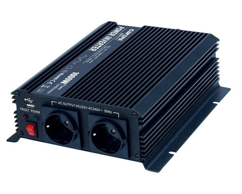 Měniče Carspa jsou jedny z nejpopulárnějších zařízení na trhu. Měnič transformuje stejnosměrný proud z 12V baterie na střídavý proud 230V. Díky tomu můžete používat své oblíbené spotřebiče např. nabíječky kamer, foťáků, mobilních telefonů, tabletů, notebooků a jiných zařízení až do výkonu 1000W i v místech, kde není dostupná rozvodná elektická síť a jde tak o ideální řešení na cesty. Vhodný i pro rychlovarné konvice nebo mikrovlnné trouby do výkonu 1000W.