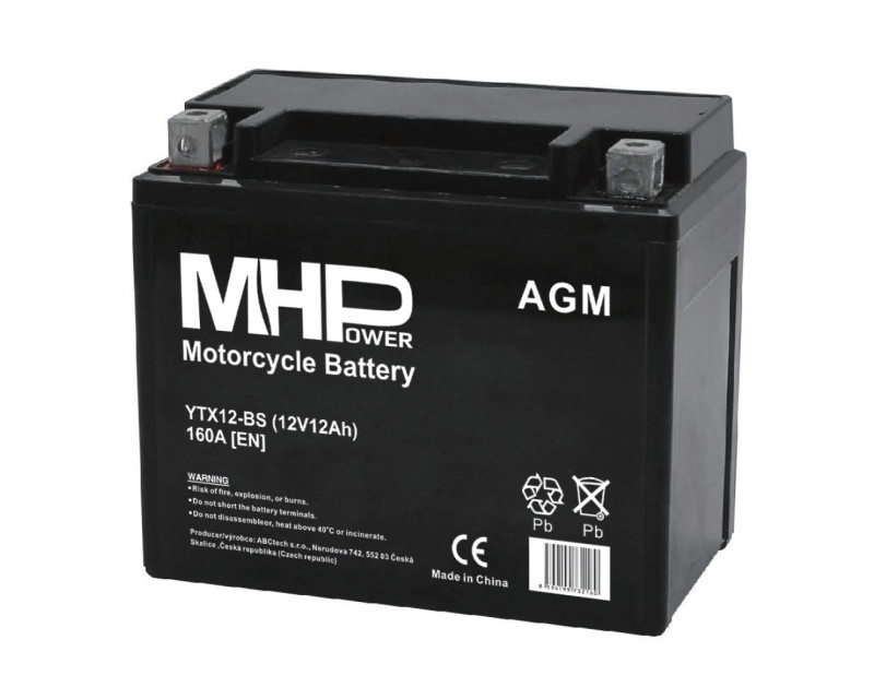 Motobaterie MHPower YTX12-BS AGM 12V, 12Ah, 160A