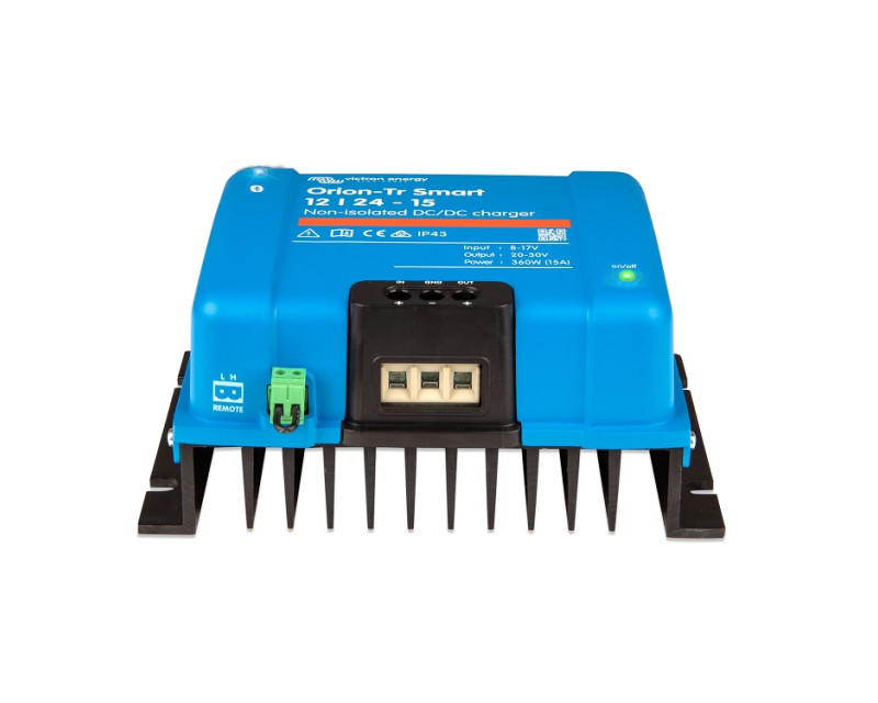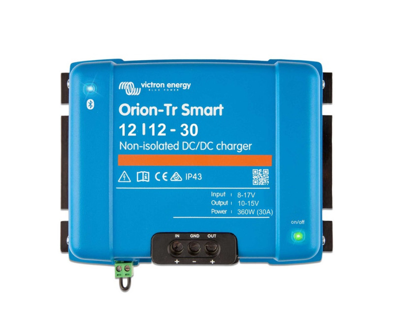 Nabíječka Orion Tr-Smart může být použita v 12V nebo 24V systémech a je vhodná jak pro olověné kyselinové baterie, tak i pro lithiové baterie. K dispozici jsou modely až do 400 W. Kromě toho, pro zvýšení výstupního výkonu můžete paralelně zapojit neomezený počet jednotek.