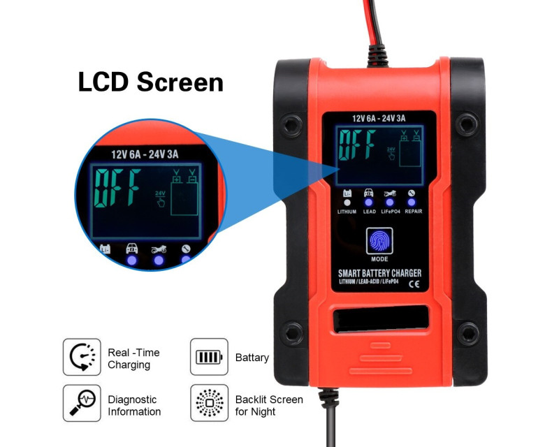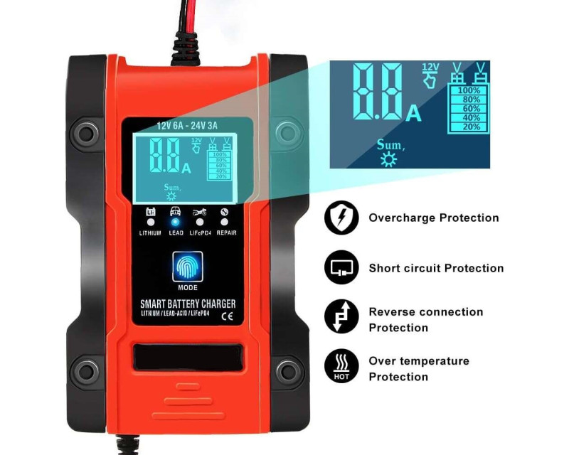 Chytrá nabíječka Olověných, LiFePO4 a lithiových baterií umožňující trvalé propojení s nabíjenou baterií. Je vybavená programem pro regeneraci Pb baterií. Plně automatická nabíječka baterií se 7 nabíjecími stupni.