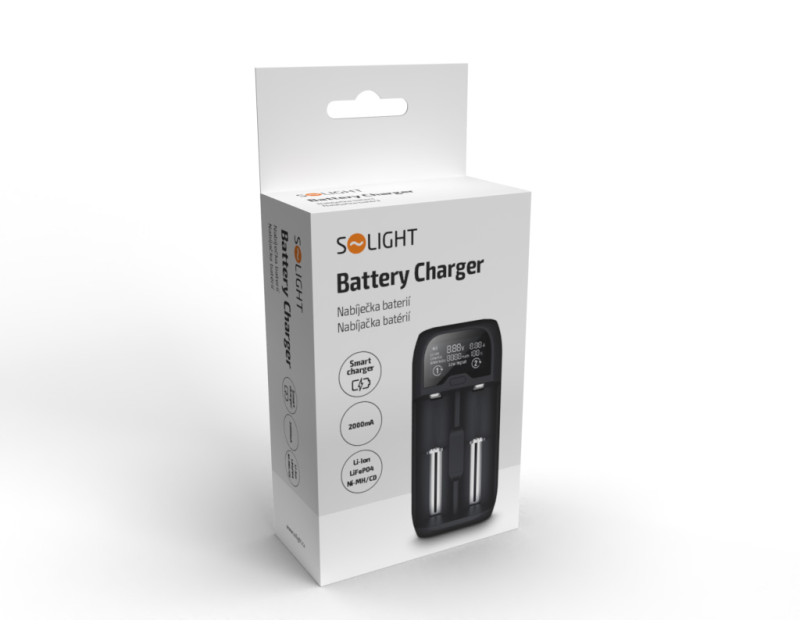 Solight nabíječka baterií Li-Ion, LiFePO4, Ni-MH/CD, AA, AAA, 18650, 2000mA, 2 kanály, LCD displej