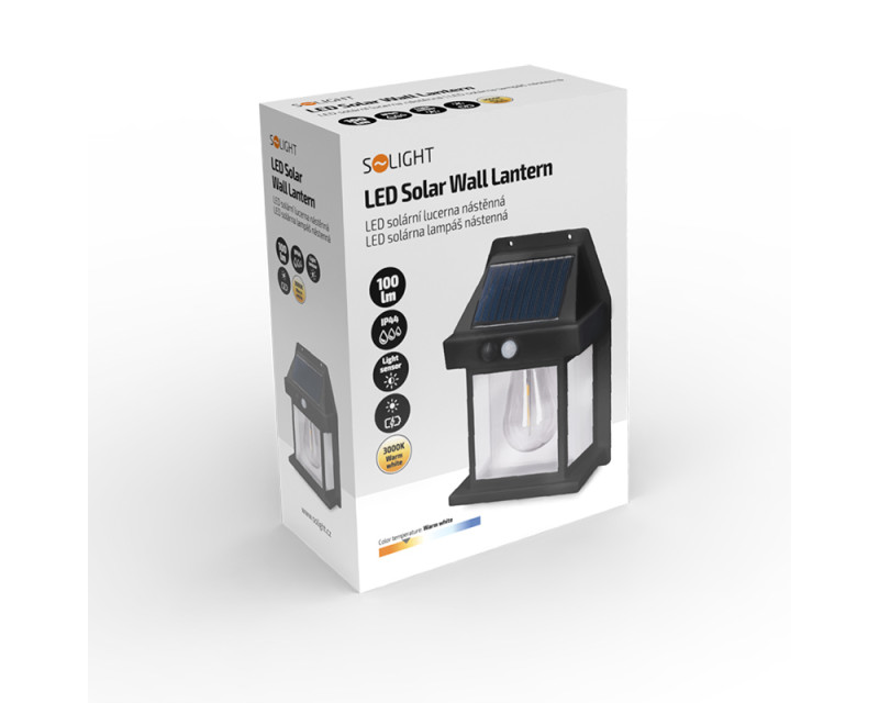 Solight LED solární lucerna nástěnná, teplá bílá, 12x17cm, černá