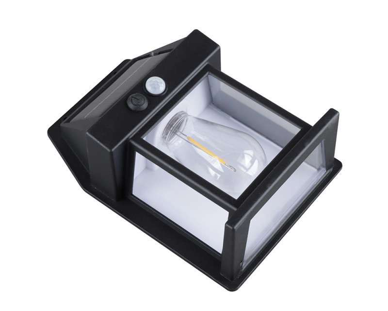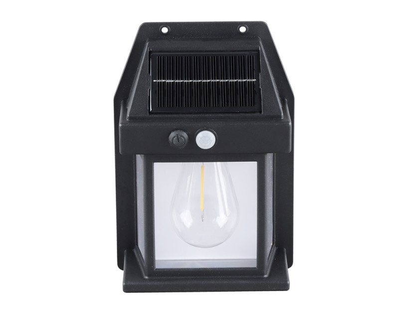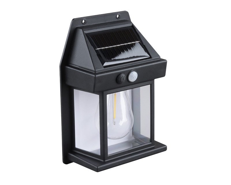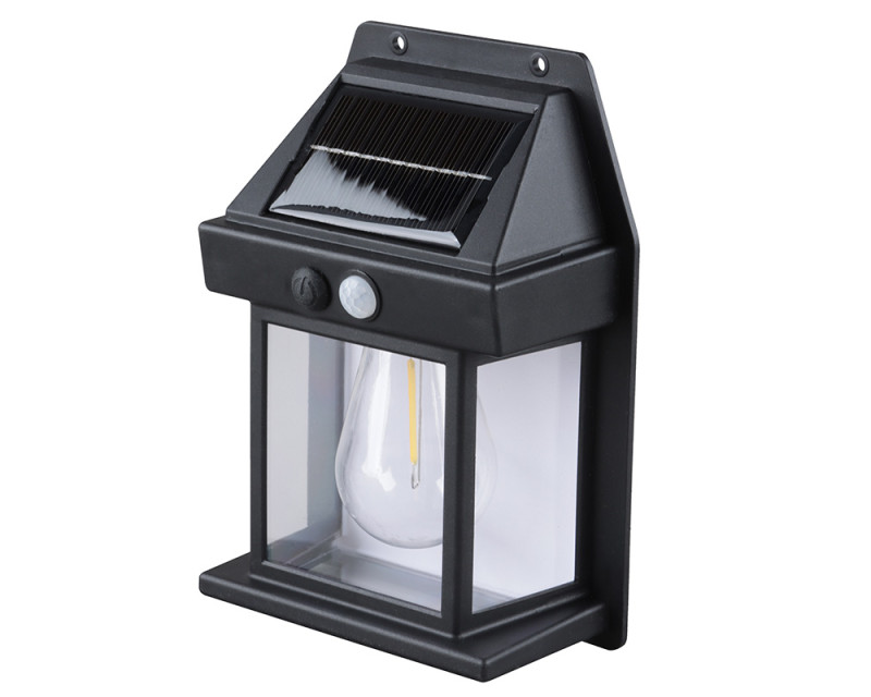 - LED venkovní solární nástěnná lucerna s vestavnou žárovkou, pohybovým a světelným senzorem
