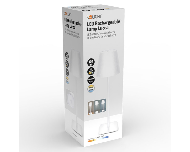 Solight LED nabíjecí lampička Lucca, 120lm, změna CCT, stmívání, bílá