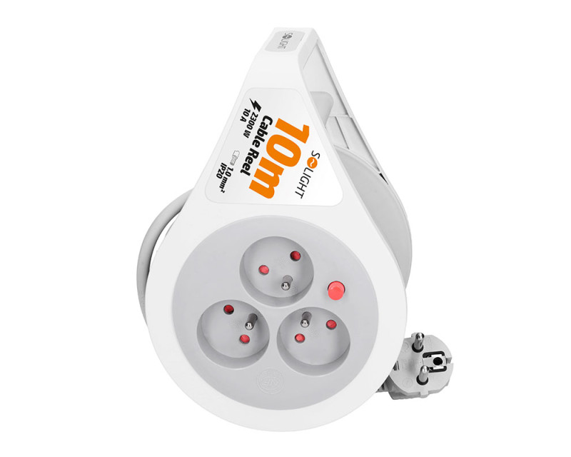 • Solight prodlužovací přívod na bubnu 10m, 3 zásuvky, šedý kabel, 3x 1,0mm2