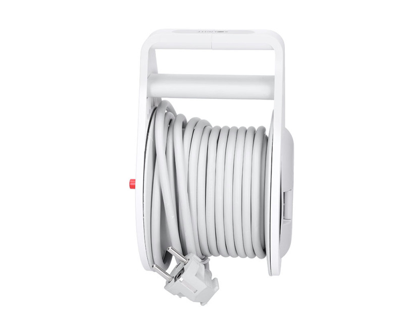 Přestože je buben malý a skladný, zvládne běžnou práci jako větší modely. Tři zásuvky s dětskými pojistkami jsou navíc chráněny i tepelnou pojistkou, která odpojí napájení při přetížení nebo při plné zátěži bez úplného odvinutí kabelu. 10 metrů délky poskytuje dostatek dosahu pro běžné použití v interiéru.