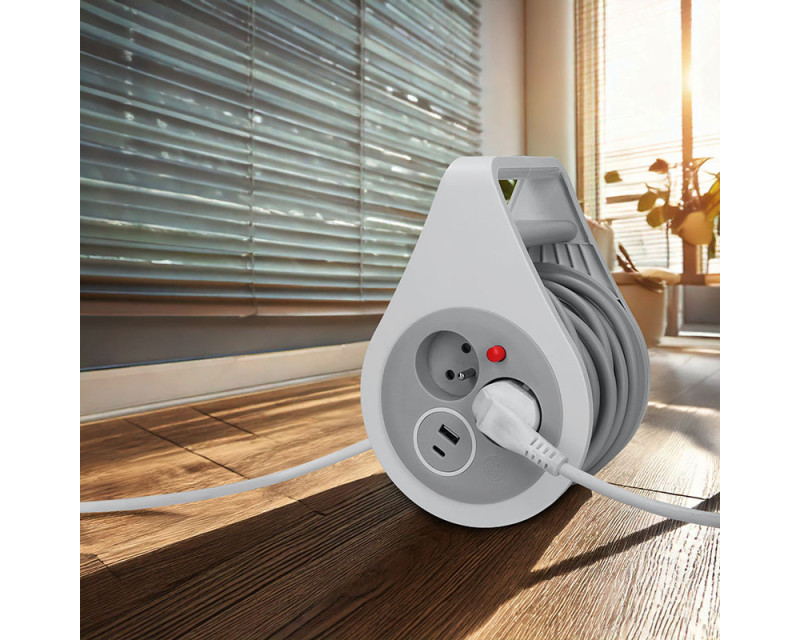Moderní prodlužovací přívod v kompaktním těle nabízí nejen dvě zásuvky 230 V, ale také integrovanou USB nabíječku. Díky USB-A a USB-C portům můžete při práci pohodlně nabíjet telefon, tablet nebo přenosnou elektroniku bez nutnosti hledat adaptér. Elegantní design a světle šedé provedení z něj dělají i pěkný doplněk do každého interiéru.