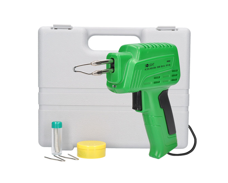 Pájecí sada 100W v praktickém kufříku, ideální pro domácí i profesionální použití. Obsahuje páječku s pájecím očkem 1,8 mm, náhradní smyčky, kalafunu a cín (Sn 99,3%, Cu 0,7%). Napájení 230V / 50Hz, délka přívodního kabelu 120 cm. Perfektní sada pro přesné a spolehlivé pájení.