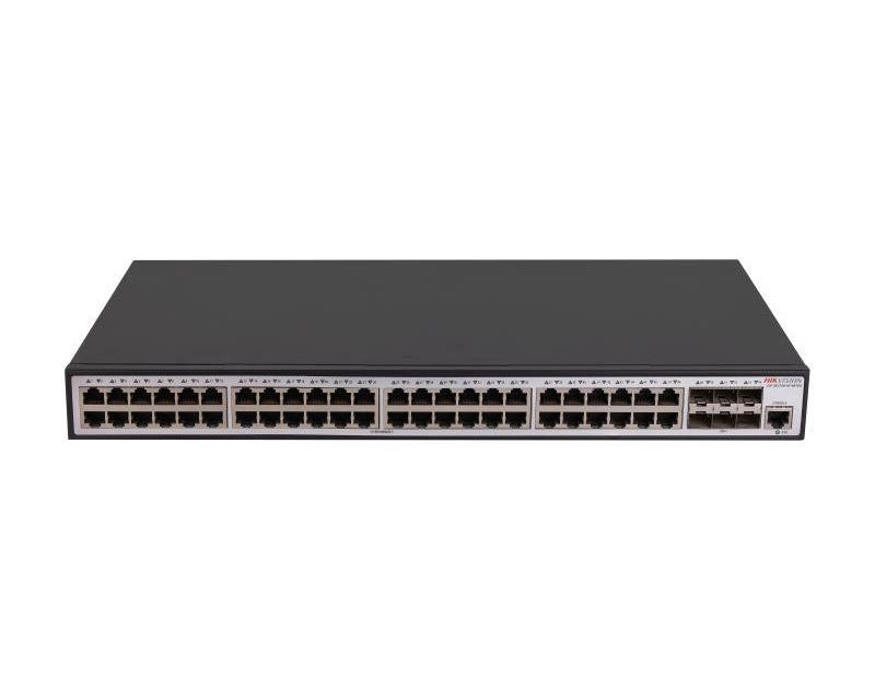 Switche a POE napájení HikVision 54 portový switch - 48x RJ-45 1Gbps + 6x uplink SFP slot 10Gbps, pokročilý management, 1x Console port, kovové šasi, stavové LED, hmotnost 3.6kg, rozměry 440 x 44 x 260mm 19" 1U, provozní teploty -5°C až +45°C, napájení 230VAC 53W