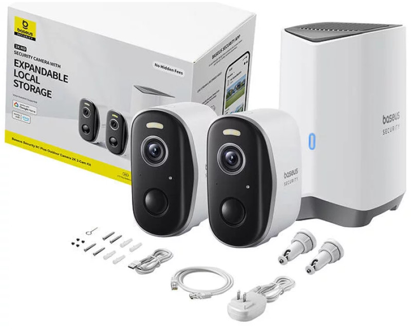 Venkovní kamera Baseus Security N1 Plus 2K (sada 2ks+centrální stanice) bílá