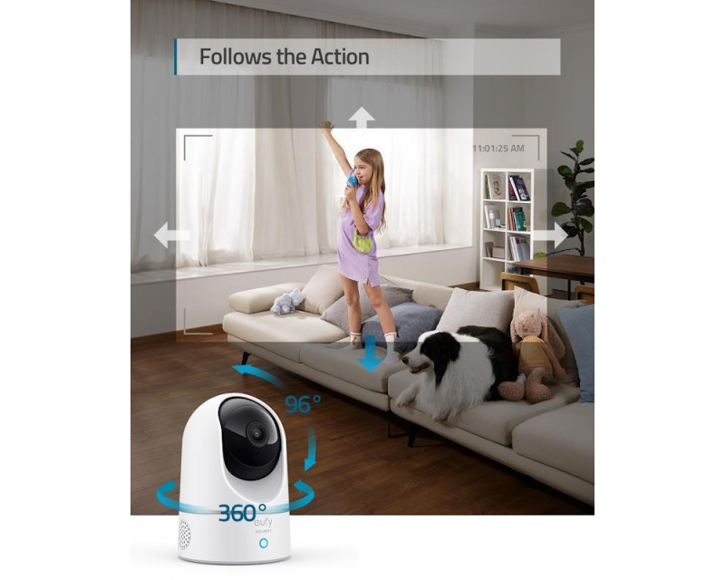 Domácí kamera Eufy Indoor Cam 2K nabízí špičkovou obrazovou kvalitu, obousměrnou komunikaci a široké možnosti sledování prostoru. Díky 2K rozlišení (2 048 × 1 080 px), zornému úhlu 125° a motorické rotaci až 360° horizontálně a 96° vertikálně získáte dokonalý přehled o celé místnosti.