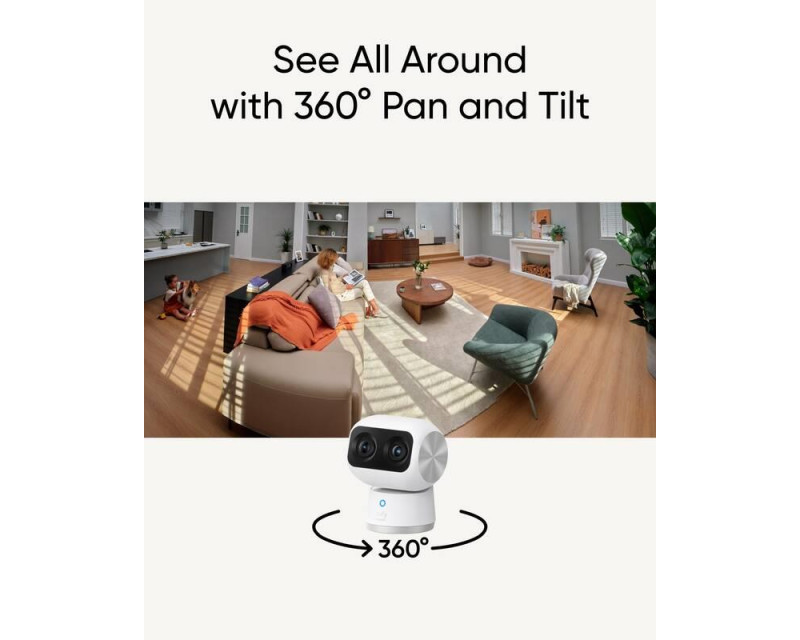 Vnitřní duální kamera Eufy Indoor Cam S350 Dual 4K je vybavena dvěma objektivy, které společně poskytují mimořádně čistý, jasný a detailní obraz v rozlišení 4K Ultra HD.
