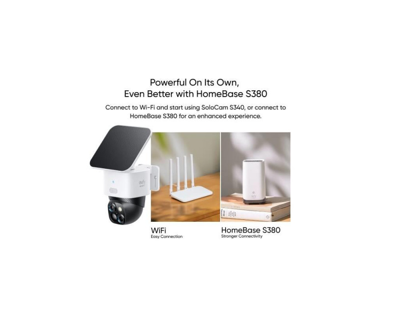 Eufy SoloCam S340 Dual 3K lze používat samostatně nebo s jednotkou HomeBase 3 (S380), která přináší: