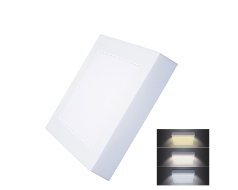 Moderní čtvercový přisazený panel o výkonu 12 W je navržen pro efektivní a estetické osvětlení interiérů. Díky přepínači si snadno zvolíte jednu ze tří barevných teplot (3000K, 4000K, 6000K). Poskytuje světelný tok 900 lm a díky širokému úhlu svícení 160° zajistí rovnoměrné osvětlení bez stínů.