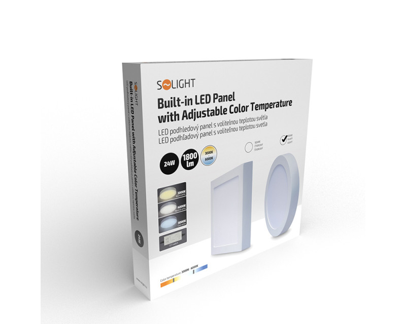 Solight LED mini panel CCT, přisazený, 24W, 1800lm, 3000K, 4000K, 6000K, kulatý