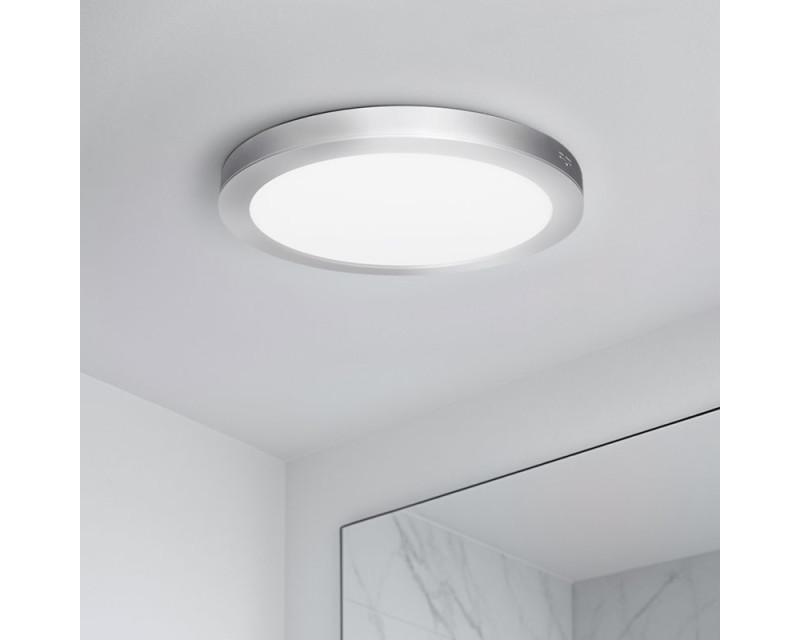 Solight LED mini panel koupelnový 2v1, 3CCT, podhledový/přisazený, 18W, 1530lm, IP54, stříbrná, kulatý