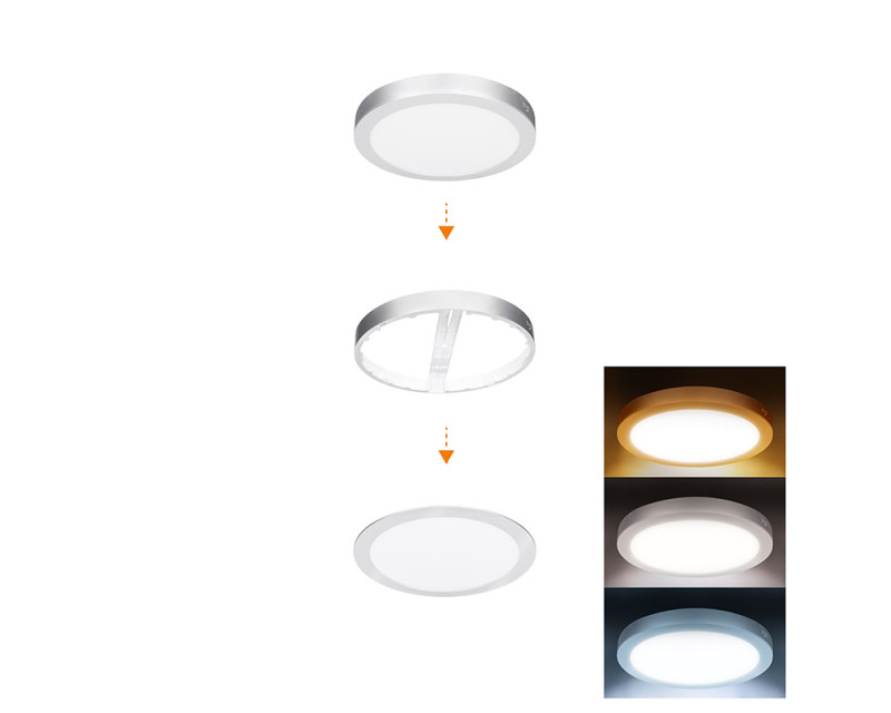 - panel disponuje speciálním LED zdrojem s přepínačem, který umožňuje nastavení teploty světla (chromatičnosti) 3000K, 4000K nebo 6000K. Současně je možné panel instalovat do podhledu, nebo vložit do rámu a namontovat přímo na strop.