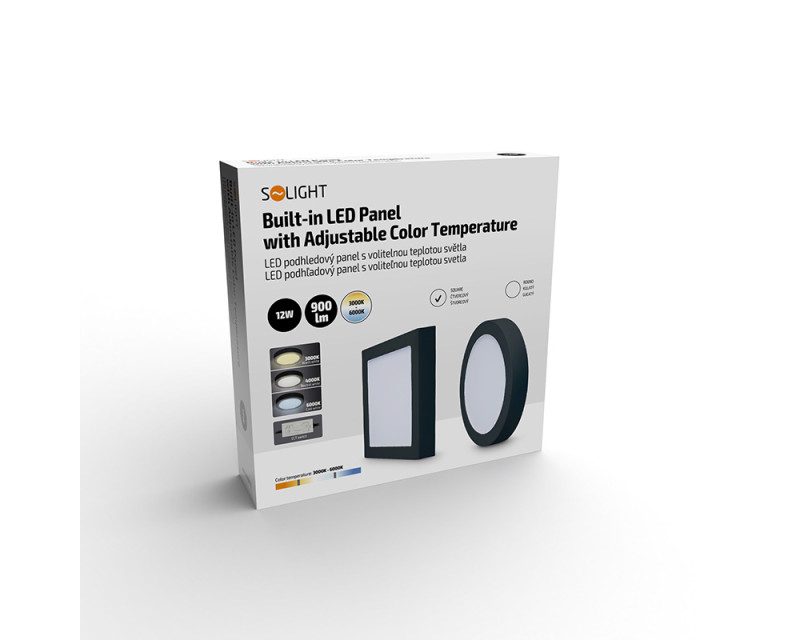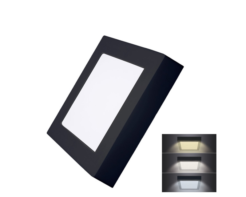 Solight LED mini panel CCT, přisazený, 12W, 900lm, 3000K, 4000K, 6000K, čtvercový, černá barva