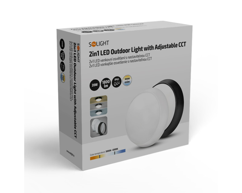 Solight LED venkovní osvětlení, nastavitelná teplota světla - 3CCT, 15/18/20W, 1800lm, 22cm, 2v1 - bílý a černý kryt