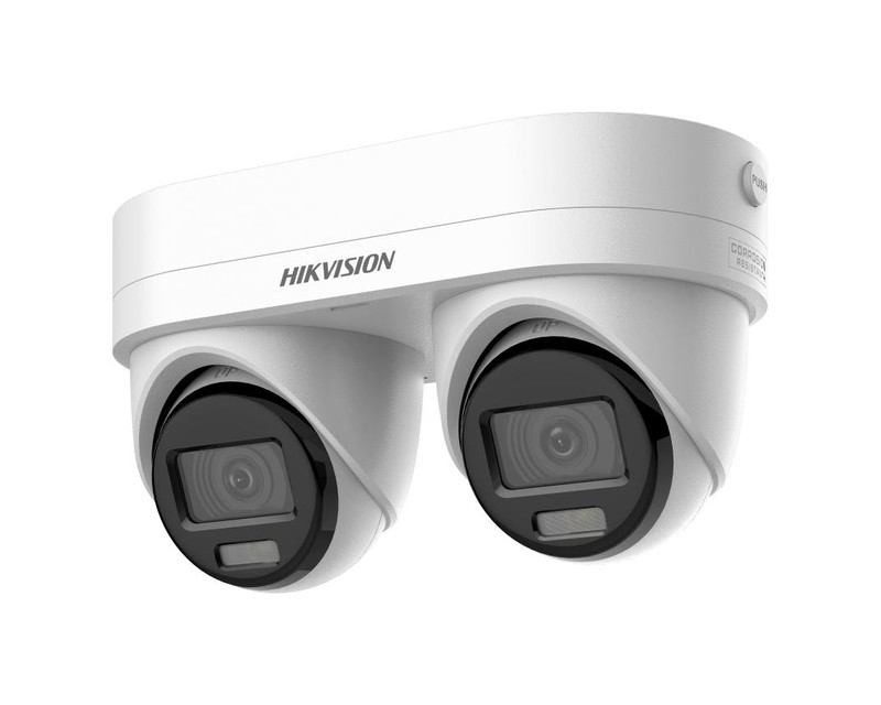 IP kamery HikVision 2x 4Mpx, objektiv 2.8/4mm (99.3°/80°), AcuSense 3.0, WDR, 2x mikrofon, reproduktor, bílé zábleskové světlo
