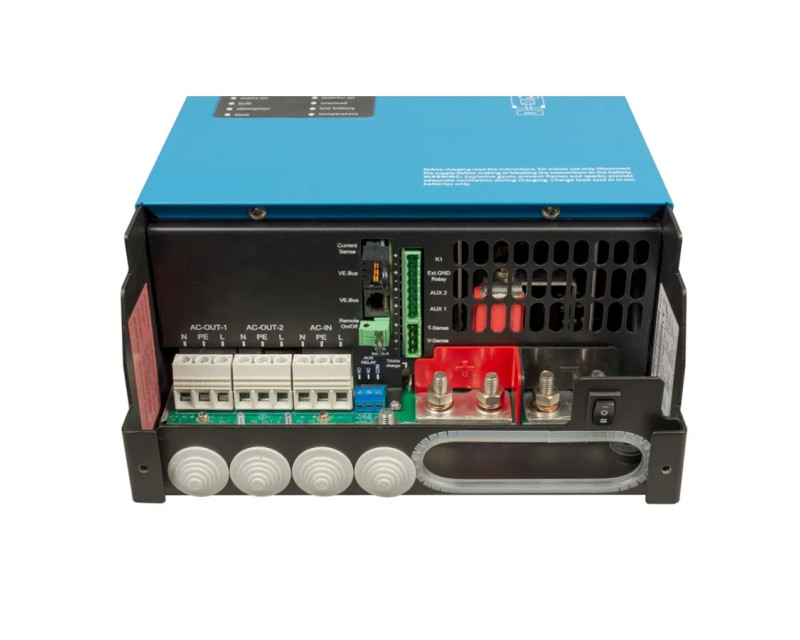 MultiPlus-II je vybaven jedním AC vstupem pro připojení distribuční sítě nebo např. generátoru. Pokud jsou potřeba dva AC vstupy, pak zvolíme jednotku Quattro.