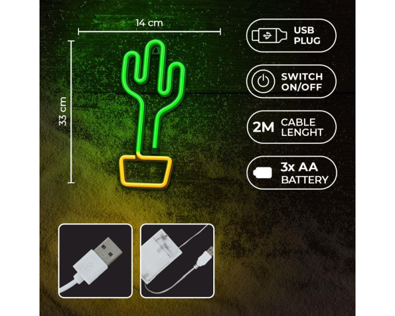 Díky technologii LED spotřebovávají neonové nápisy relativně málo elektřiny. Mohou být napájeny 3 bateriemi AA nebo zástrčkou USB. Neonové nápisy jsou k dispozici v mnoha tvarech a barvách včetně bílé, oranžové, zelené, červené a růžové. Zařízení je vyrobeno z plastu v bílé barvě. Rozměry závisí na typu provedení.