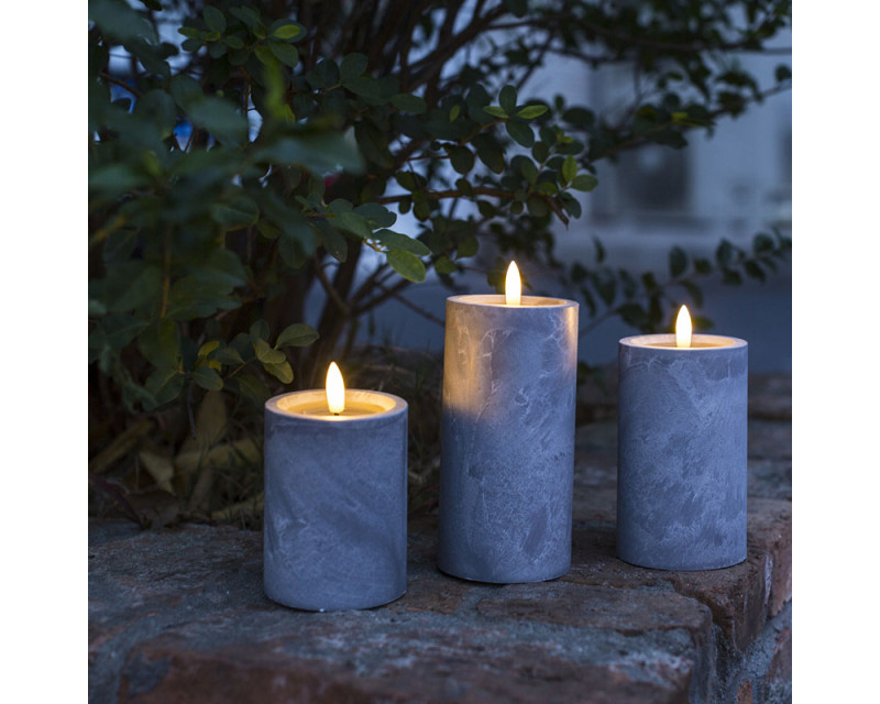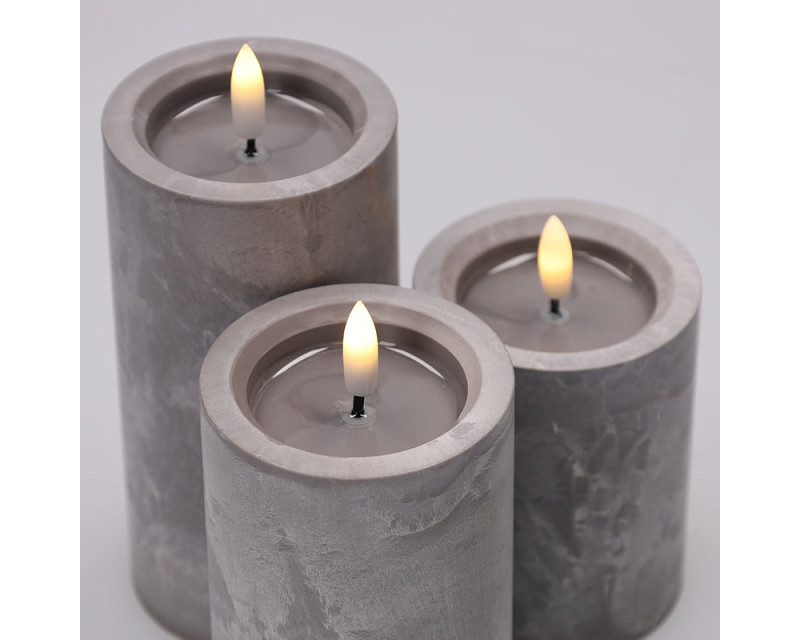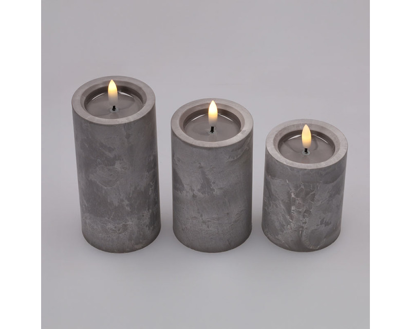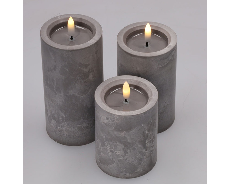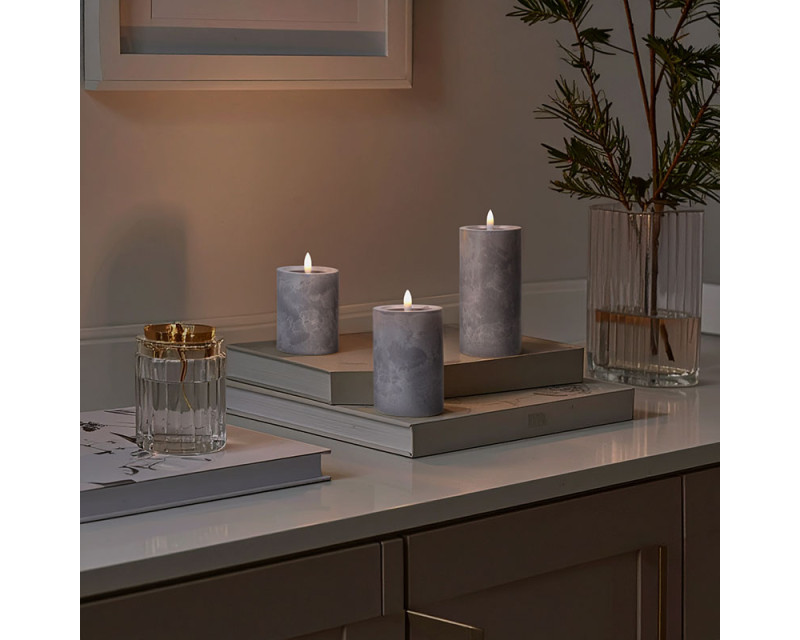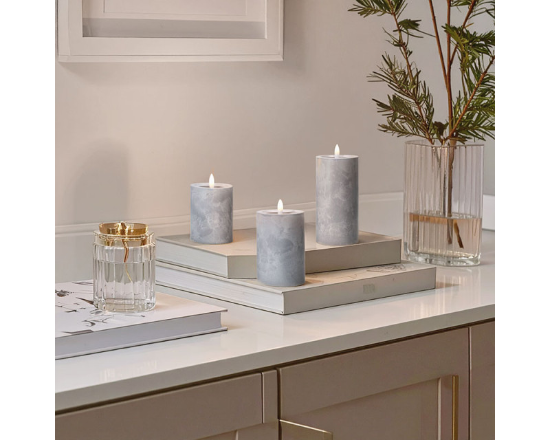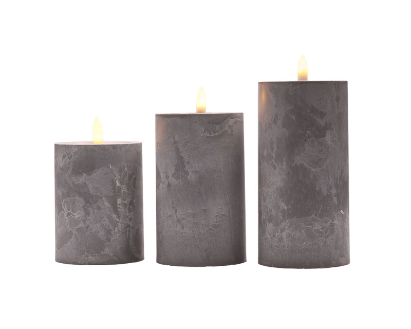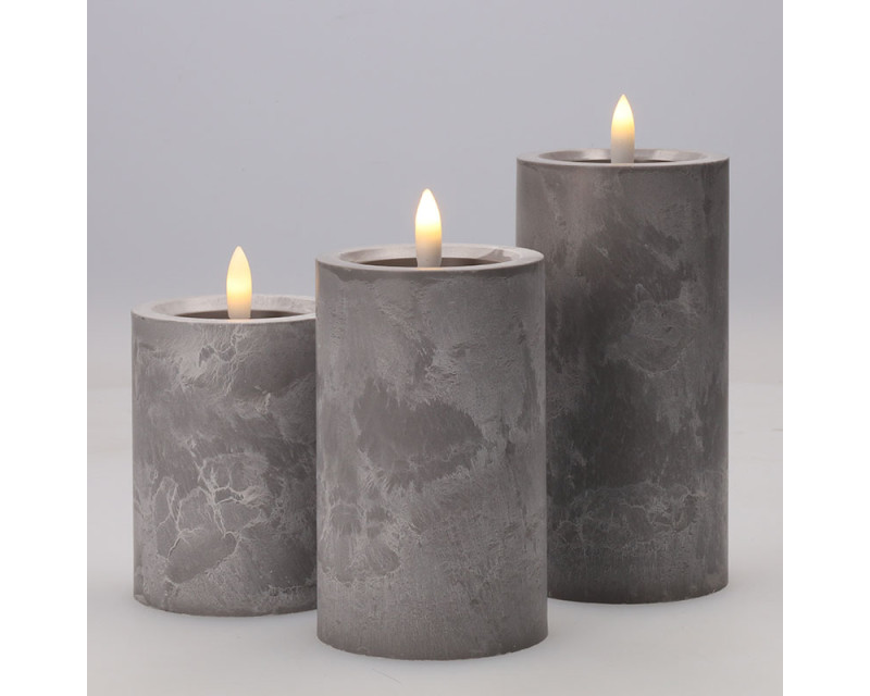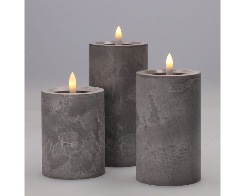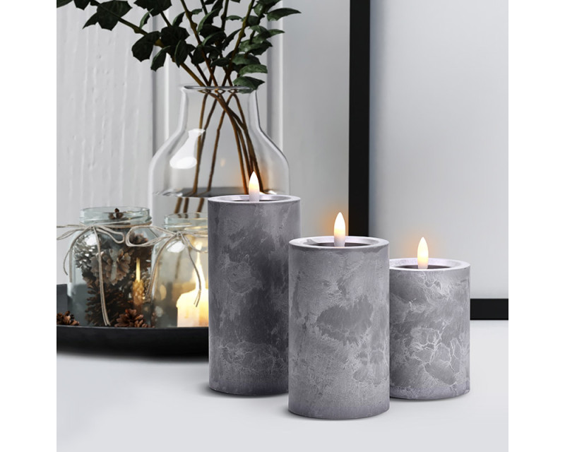 Vytvořte si elegantní atmosféru s LED svíčkami s efektem přirozeně blikajícího plamene a luxusním dekorem šedého mramoru. Tato sada tří svíček vnese do vašeho interiéru moderní a útulný vzhled bez nebezpečí otevřeného ohně.