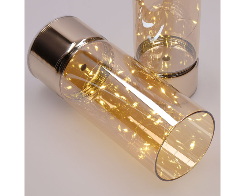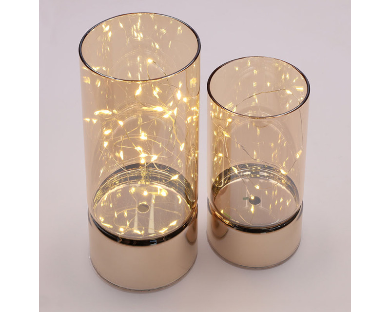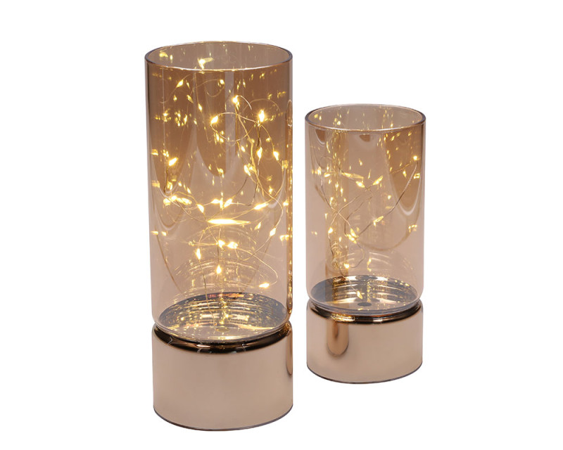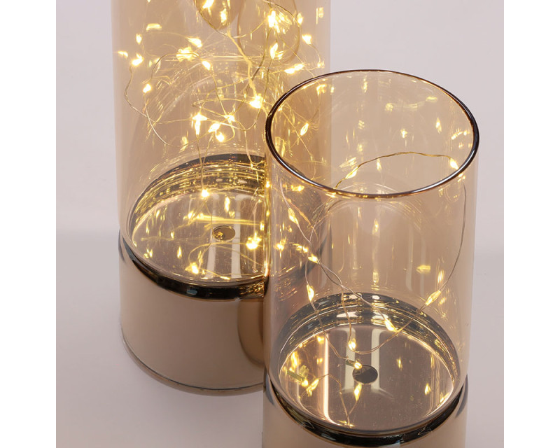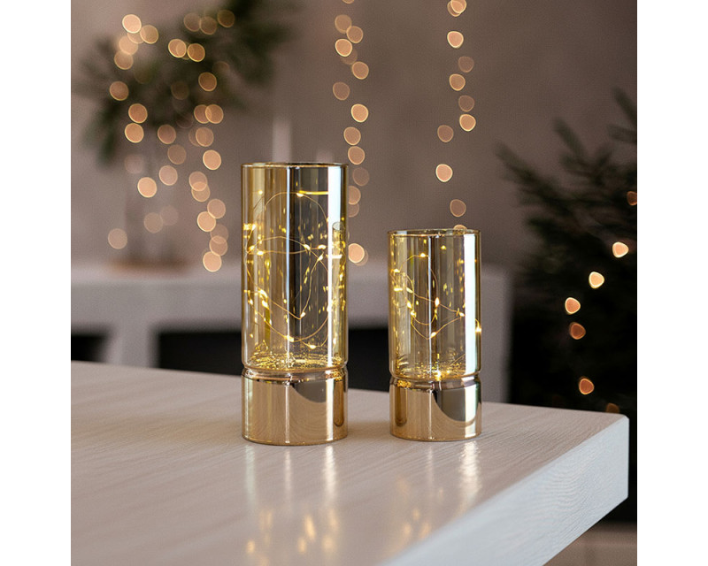Sada obsahuje dvě skleněná světélka různých velikostí, vybavená LED diodami – menší se 10 diodami a větší s 20 diodami. Jemné světlo krásně prosvítá zlatým skleněným povrchem a vytváří působivý efekt. Díky praktickému časovači se světélka automaticky zapnou na 6 hodin a poté se na 18 hodin vypnou, což zajišťuje pohodlné a úsporné používání.