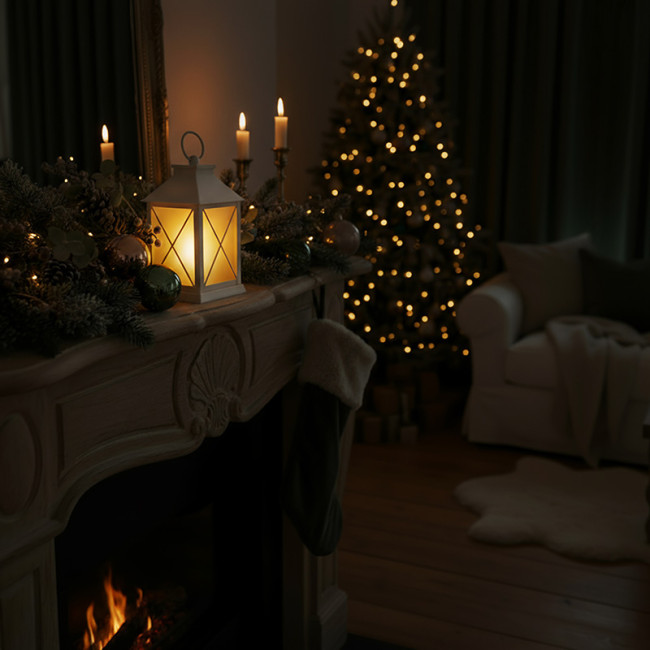 Vytvořte si kouzelnou vánoční atmosféru s elegantní bílou lucernou s blikajícím plamenem. Tato stylová dekorace vnese do vašeho domova teplo a pohodu svátečního období.