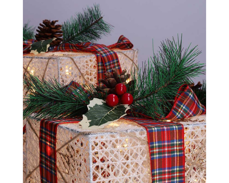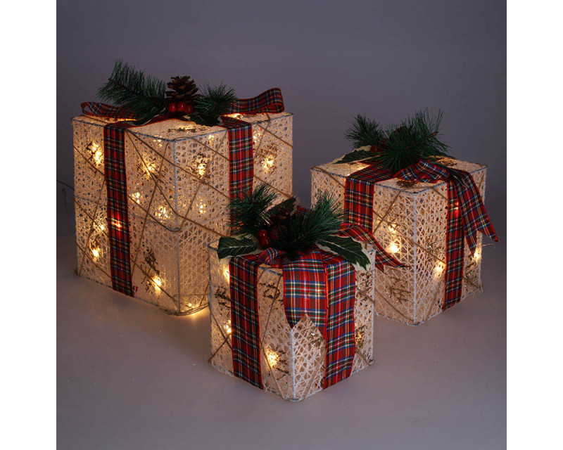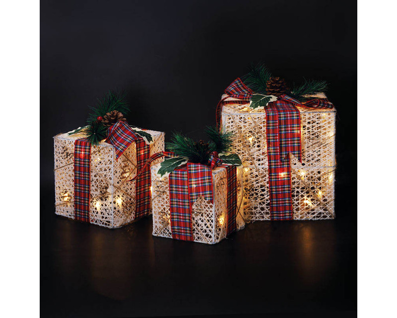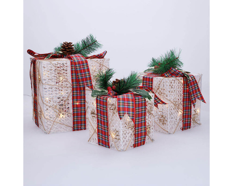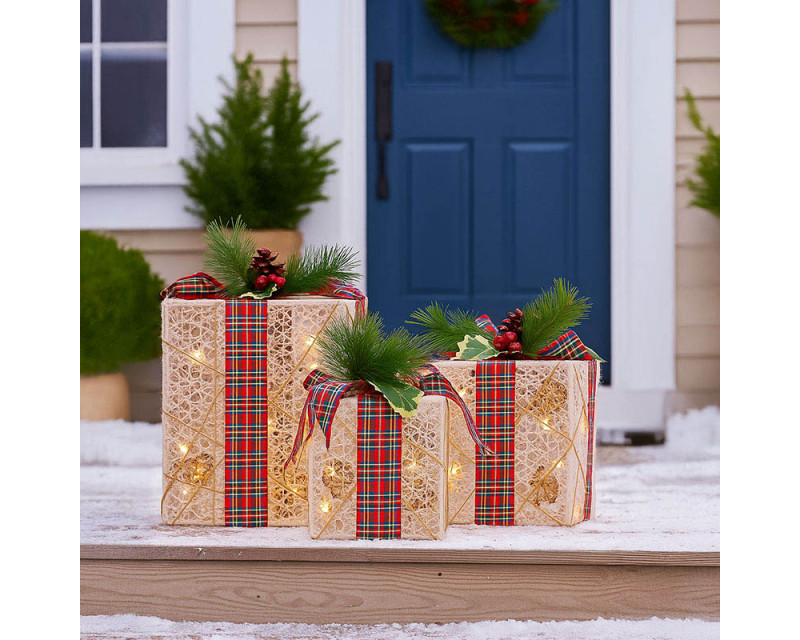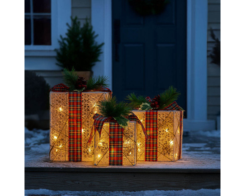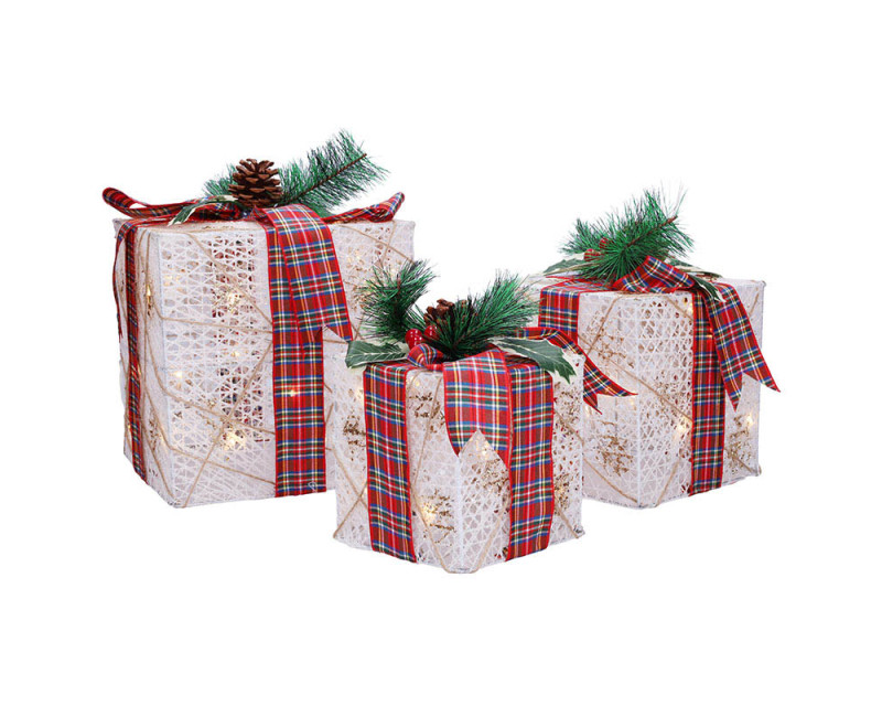 Rozjasněte svůj domov i zahradu kouzelnou sadou tří dekorativních vánočních dárků s LED osvětlením. Tyto barevné svítící dekorace vytvoří útulnou sváteční atmosféru a stanou se nepřehlédnutelným prvkem vaší vánoční výzdoby.