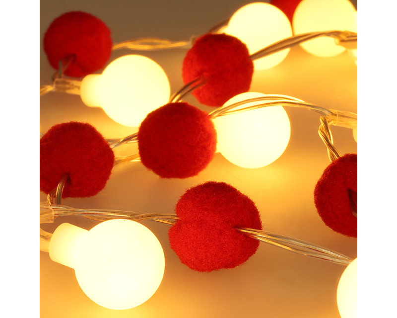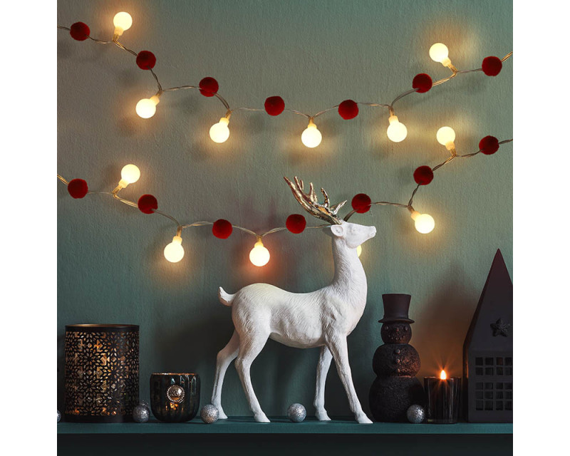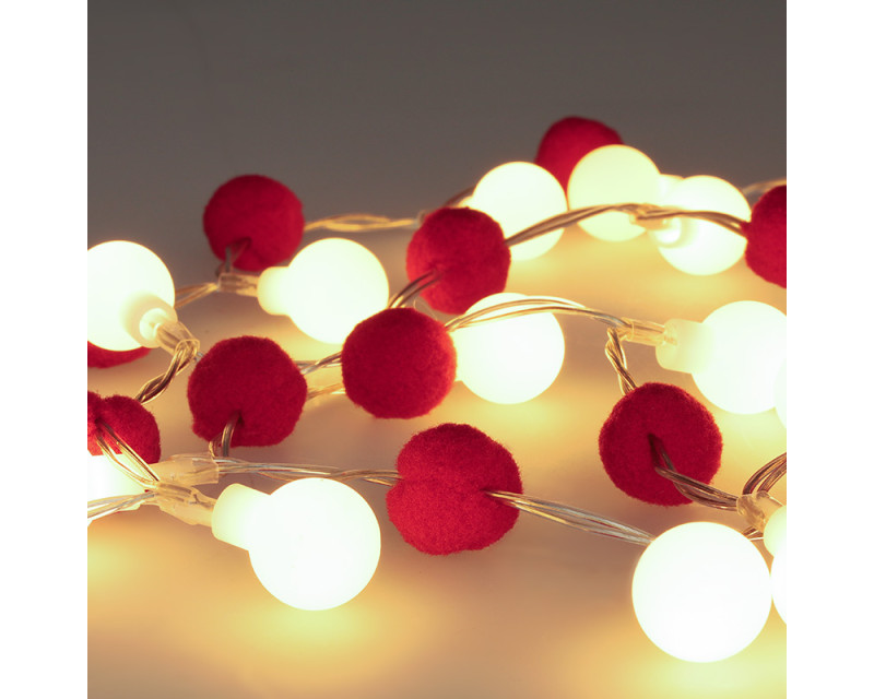Řetízek obsahuje 20 červených koulí doplněných 20 LED diodami, které vyzařují příjemné teplé bílé světlo. Ovládání je jednoduché pomocí režimů zapnuto/vypnuto. Díky napájení na dvě AA baterie (nejsou součástí balení) lze dekoraci snadno umístit kamkoli bez nutnosti elektrické zásuvky.
