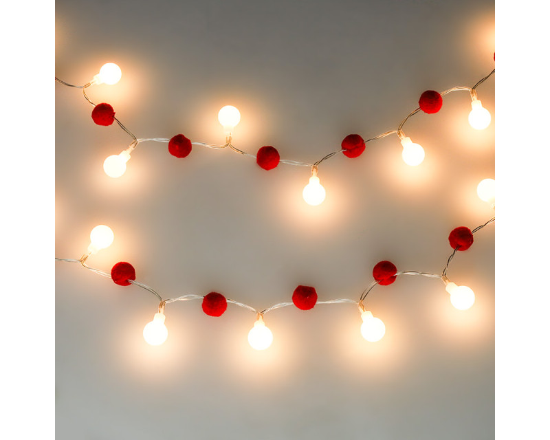 - vánoční dekorativní řetízek s červenými koulemi a LED diodami