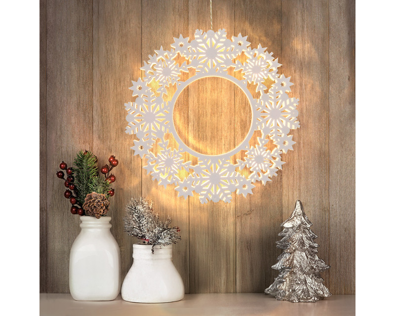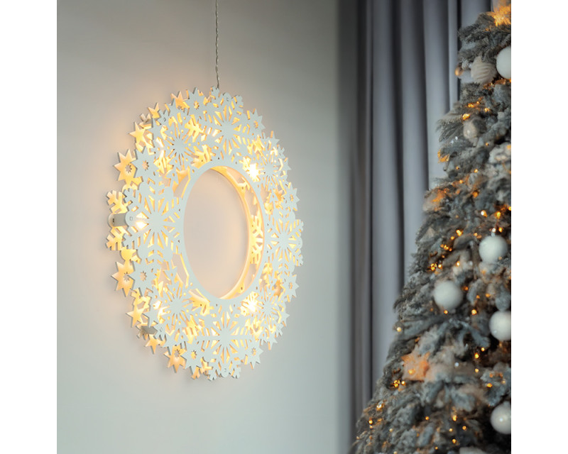 Vytvořte si kouzelnou sváteční atmosféru s LED dřevěným dekorativním vánočním věncem, který elegantně ozdobí váš domov. Jeho jemný bílý design a teplé světlo LED diod dodají interiéru příjemný a útulný vzhled.