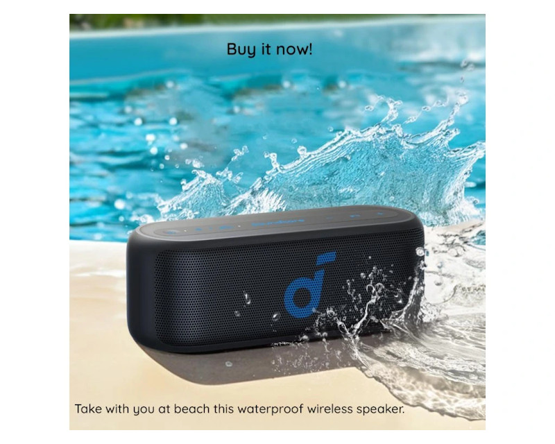 Plně vodotěsný IPX7: Obsahuje vodotěsnost IPX7, takže můžete bez obav relaxovat a poslouchat u bazénu, na pláži nebo při venkovních dobrodružstvích.