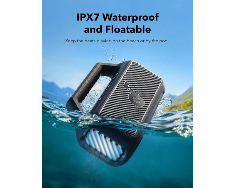 IPX7 Vodotěsný a plovoucí: Venkovní reproduktor Boom 2 je navržen tak, aby zvládl jakékoli dobrodružství, takže můžete bez obav poslouchat na pláži, u bazénu nebo v dešti.