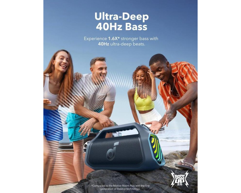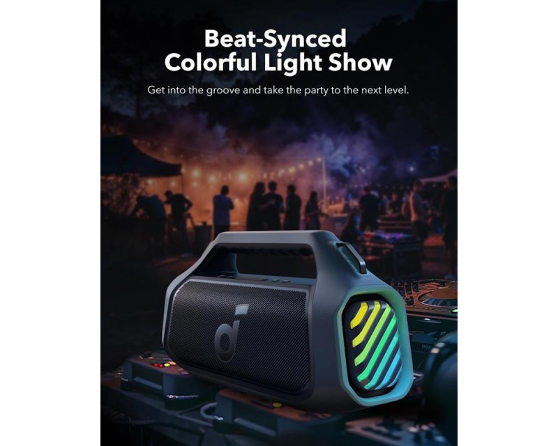Váš zvuk, vaše cesta: Venkovní reproduktor Boom 2 Plus je vybaven přizpůsobitelným profesionálním ekvalizérem, který vám pomůže najít perfektní zvuk pro jakoukoli skladbu nebo atmosféru pomocí aplikace Soundcore. A s PartyCast 2.0 můžete připojit až 100+ reproduktorů Soundcore podporující tuto funkci a posunout párty na další úroveň.
